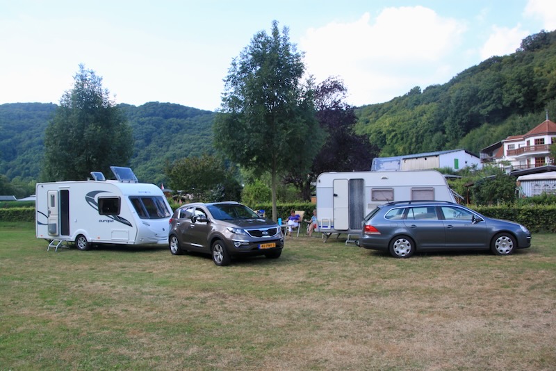 We mochten onze caravan neerzetten op een veldje. Deze ligt aan een rivier met aan de andere kant van de rivier een doorgaande verkeersweg. In de loop van de avond werd het verkeersbeeld rustiger en veroorzaakte geen overlast.