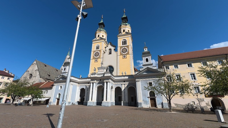 In Brixen (Bressanone) genieten we van een lunch met zicht op de Domkerk. Het is een stad die zeker een bezoek waard is. Wij bezochten deze al eerder (verslag). Daarom gaan we deze keer niet op pad in het centrum, maar rijden we na de lunch richting station om met de trein naar Brenner (Brennero) terug te gaan.
