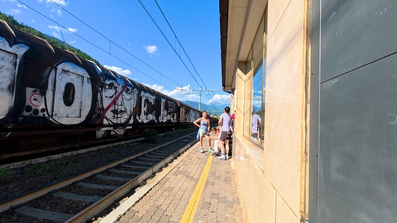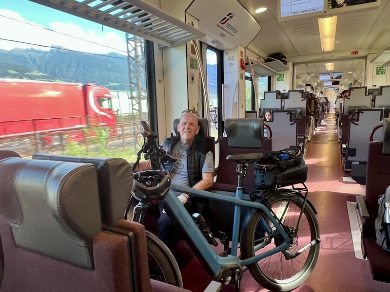 En als laatste de slechte mogelijkheid om de e-bike neer te zetten, wordt het een vervelende treinreis. Maar ook bij aankomst op het station in Brenner (Brennero) worden we onaangenaam verrast; het station heeft geen lift! We zitten ons af te vragen hoe iemand met een rolstoel, kinderwagen of een rollator op of van het perron komen.