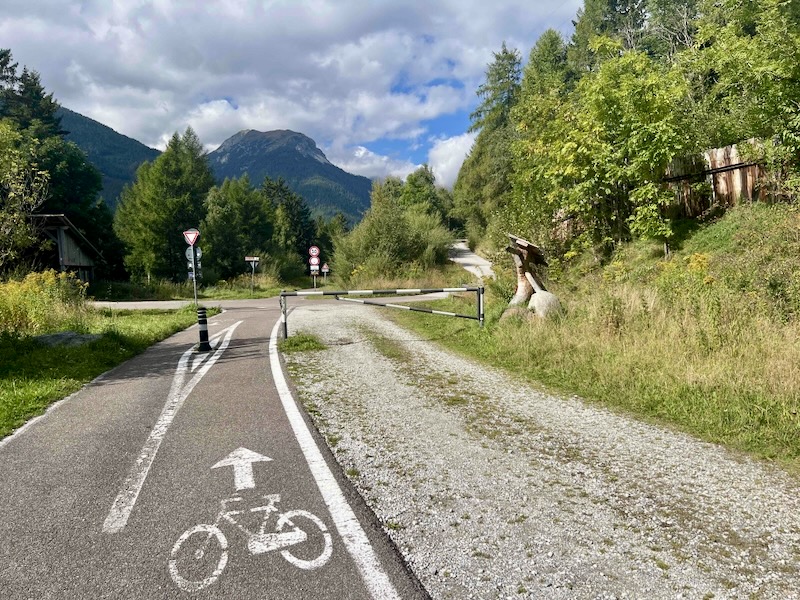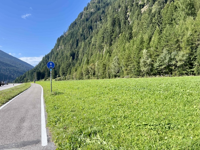 Ook na Franzenfeste (Fortezza) volgt weer een omleiding; in plaats van rechtstreeks worden we nu over het fietspad richting het Pustertal (Val Pusteria) geleid.