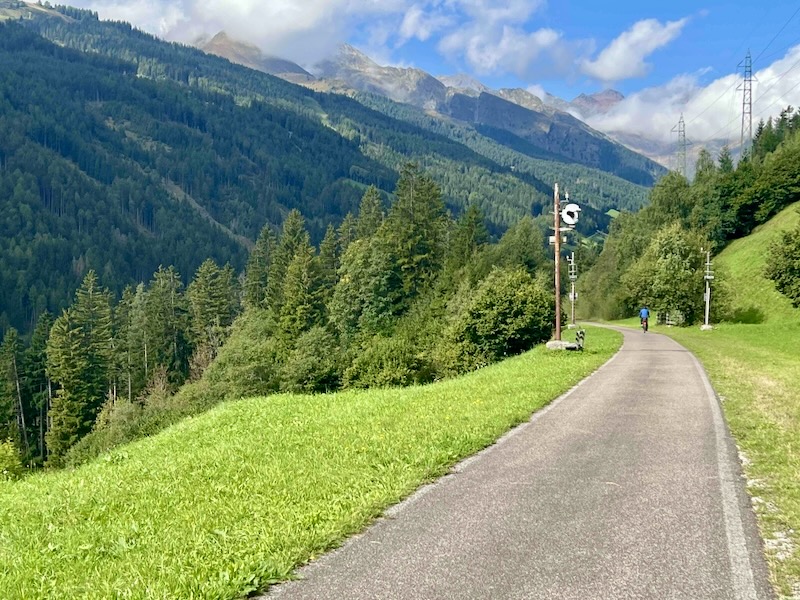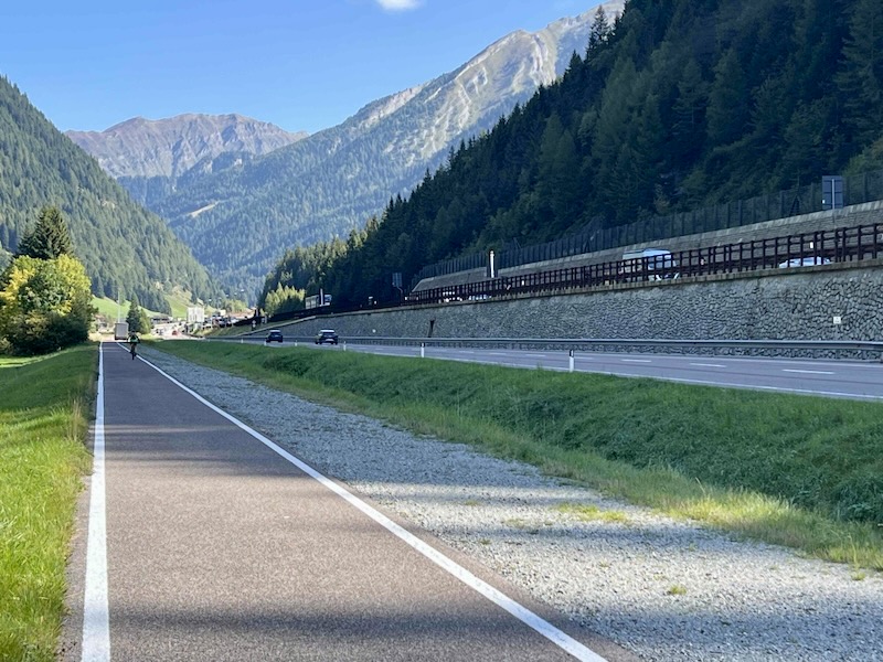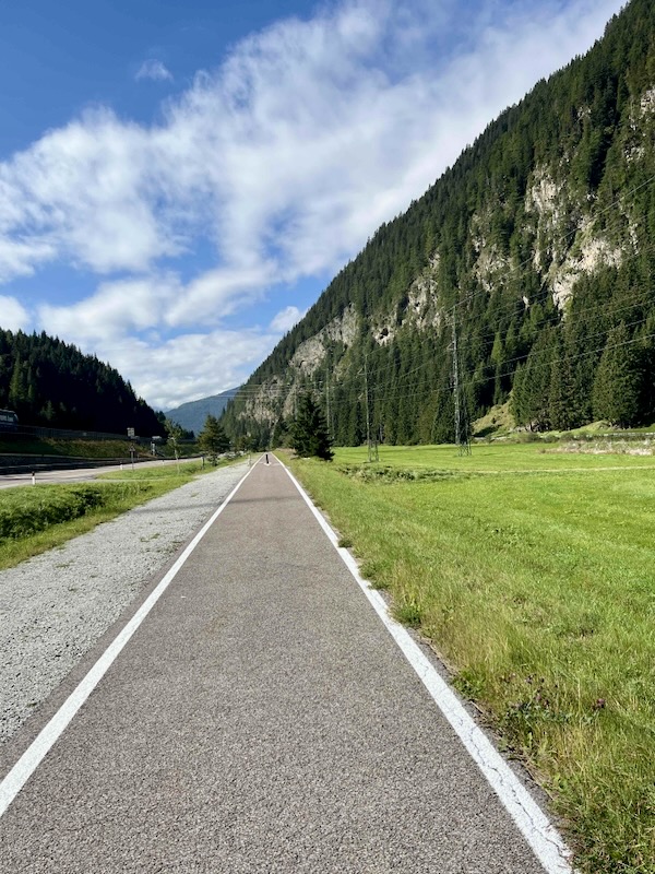 De fietsroute is aangelegd over een voormalig spoortraject. Het eerste deel vanaf de Brenner verloopt kaarsrecht.