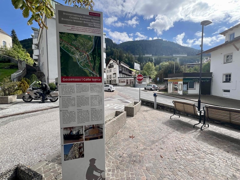 In Gossensass (Colle Isarco) maken we na 16 kilometer onze bekende eerste cappuccinostop. Het is wel even zoeken; er zijn namelijk nog niet veel open. Maar direct aan de fietsroute ligt een klein café. We vinden een tafeltje buiten. In de zon, uit de wind is het te doen.