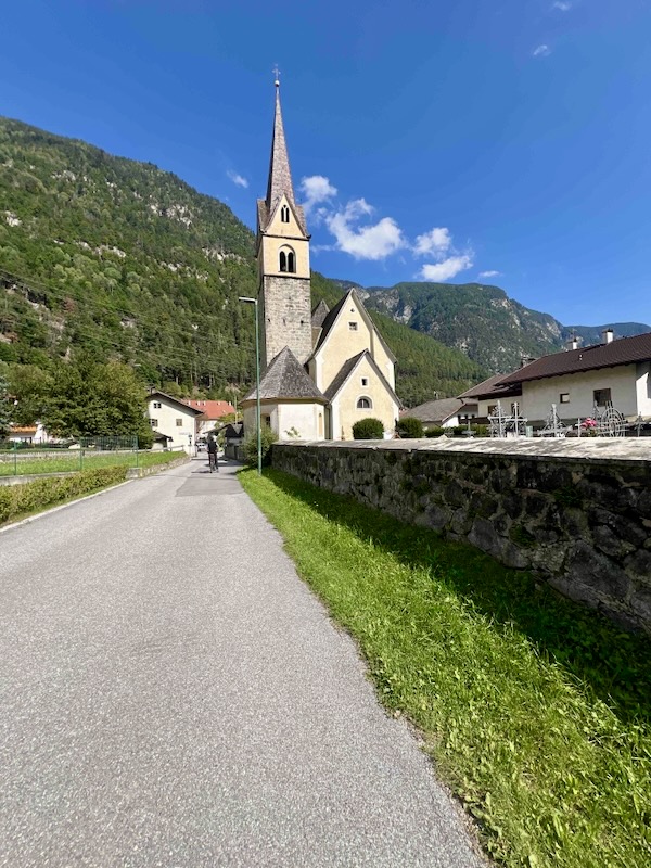 Bij Stilfes (Stilves) verlaat de fietsroute weer de snelweg. Hier volgt een steile klim door het dorp.