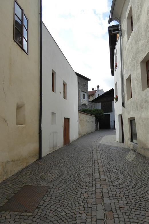 Tot in 1980 stonden er nog koeien onder de bogen maar na de grote restauratie, in het kader van de grote renovering van de stad Glurns, is het vee verdwenen.