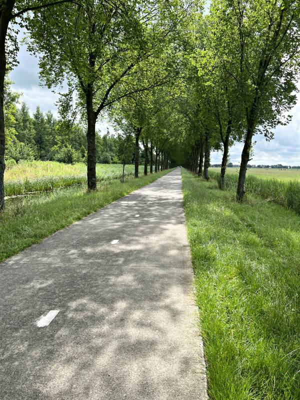 We volgen de Westerweg ongeveer 1,5 kilometer tot we rechtsaf naar het fietspad van de Groeneweg kunnen afslaan.