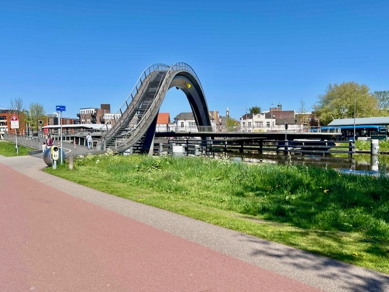 Een prachtige, zonnige dag eind april. Tijd om onze e-bikes te pakken en een rondje te gaan fietsen. We starten vanaf huis en rijden door het centrum van Purmerend en komen uit bij de Melkwegbrug. Deze blikvanger met haar beeldbepalende boog verbindt de binnenstad met de populaire woonwijk Weidevenne.