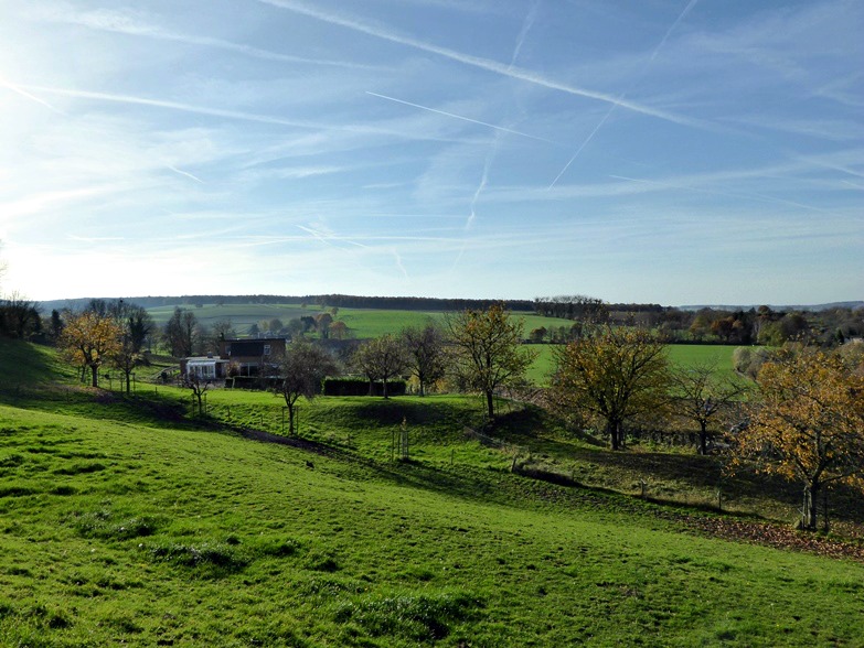 De wandeling gaat nu alleen maar heuvel afwaarts met dit keer ook een blik op Vaals.