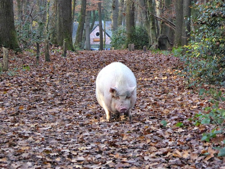 Na een flinke klim door het bos komen we in bij het Boscafé ’t Hijgend Hert. Hier loopt een varken rond welke ontsnapt is bij de kinderboerderij.