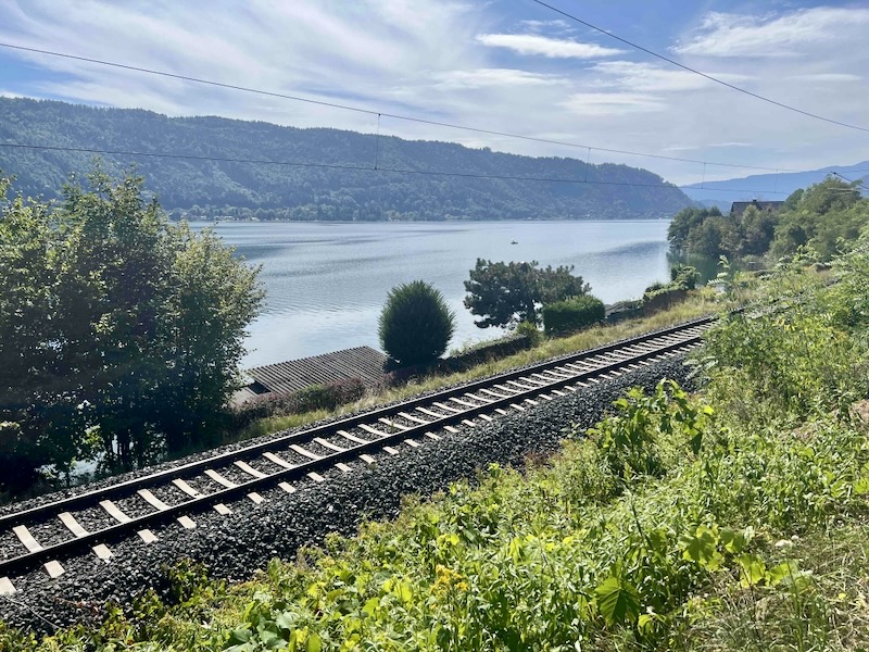 Aan de noordoever  loopt de fietsroute langs de spoorlijn van Villach naar Feldkirchen. De route gaat hier in tegenstelling tot de zuidzijde over autoluwe wegen.
