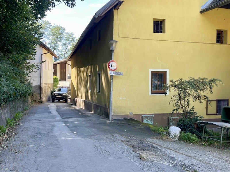 De route leidt ons naar de Roseggerstraße. Een drukke weg zonder fietspad en met veel autoverkeer. Wanneer je onze vlog van deze tour op YouTube bekijkt, hoor je Peter mopperen.