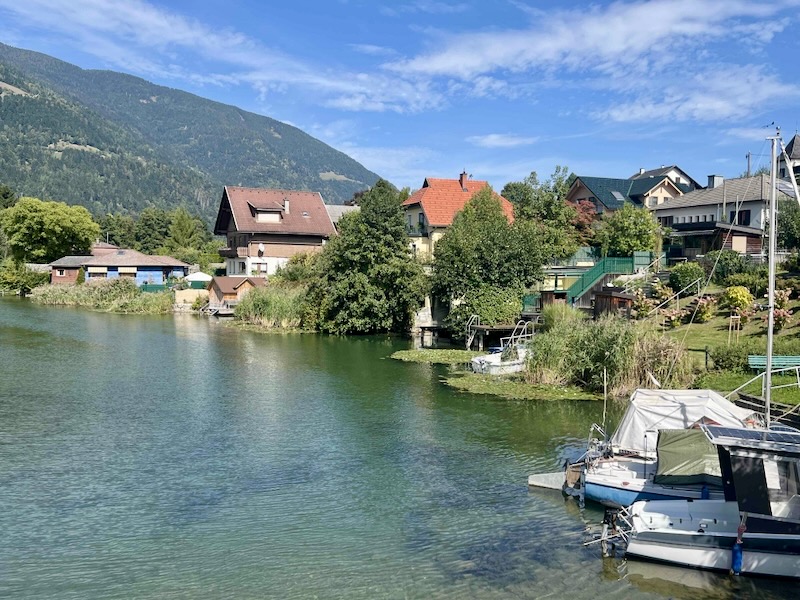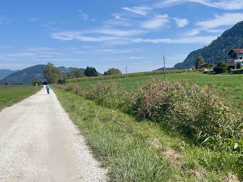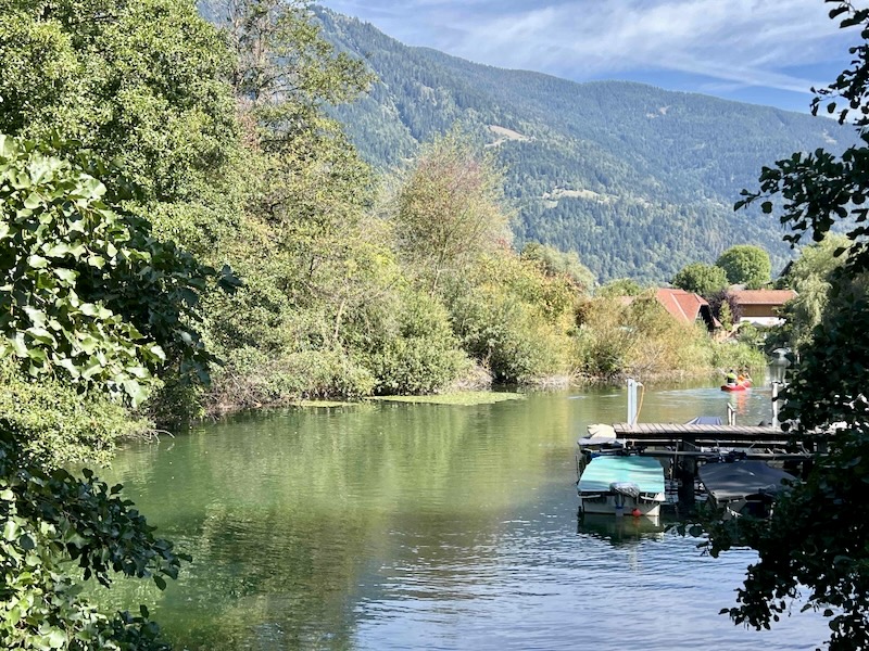 We fietsen verder langs de Seebach. Het water verbindt de Ossiachersee met de rivier de Drau.