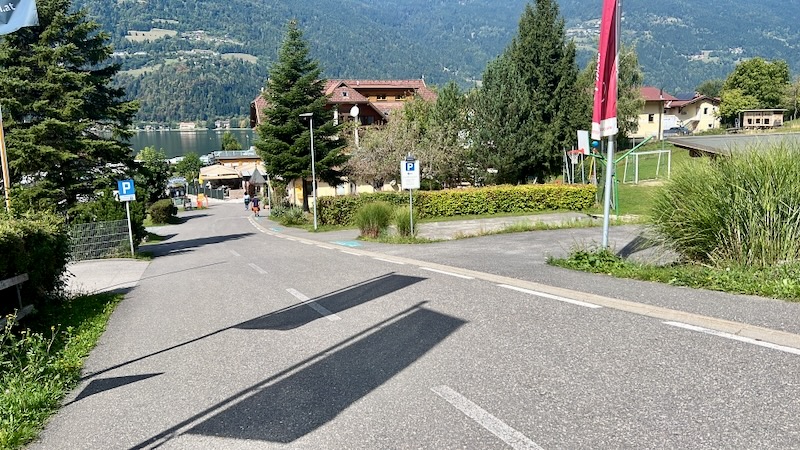 We steken de Seebach over en gaan aan de zuidkant starten met onze tour langs de Ossiachersee.