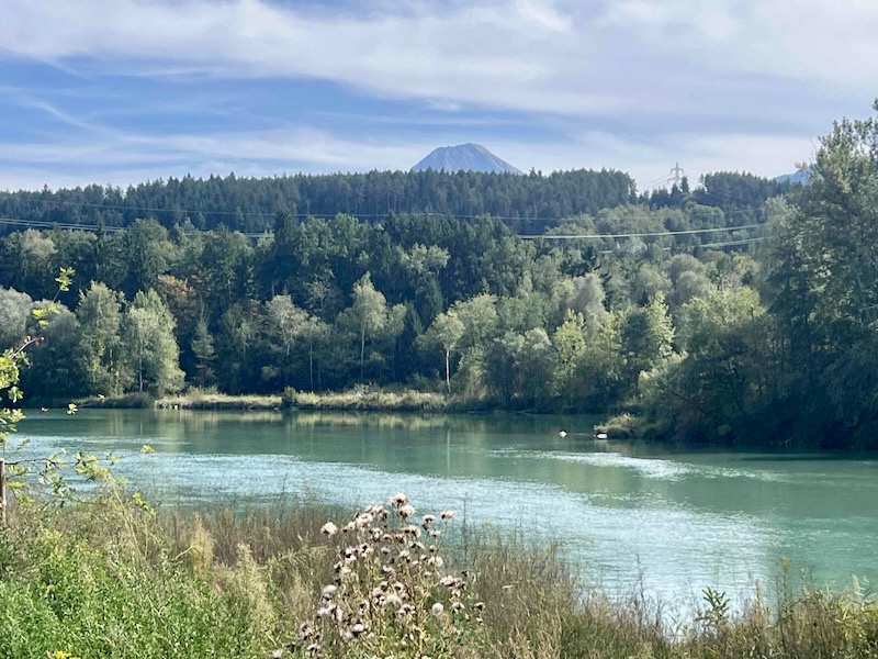 We passeren de Silbersee. Een zwemmeer, eigendom van de gemeente Villach. Het is 10.000 vierkante kilometer groot. De Silbersee is vrij toegankelijk en nodigt uit tot zwemmen, paddelen en andere watersporten.