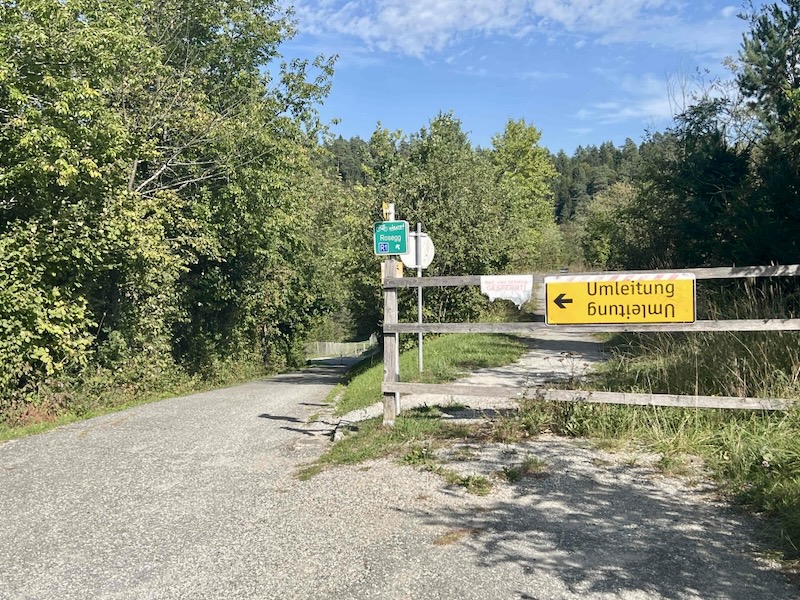 Langs het Oberwasserkanal van de Drau, dat werd gegraven voor de waterkrachtcentrale, gaat het bergafwaarts.
