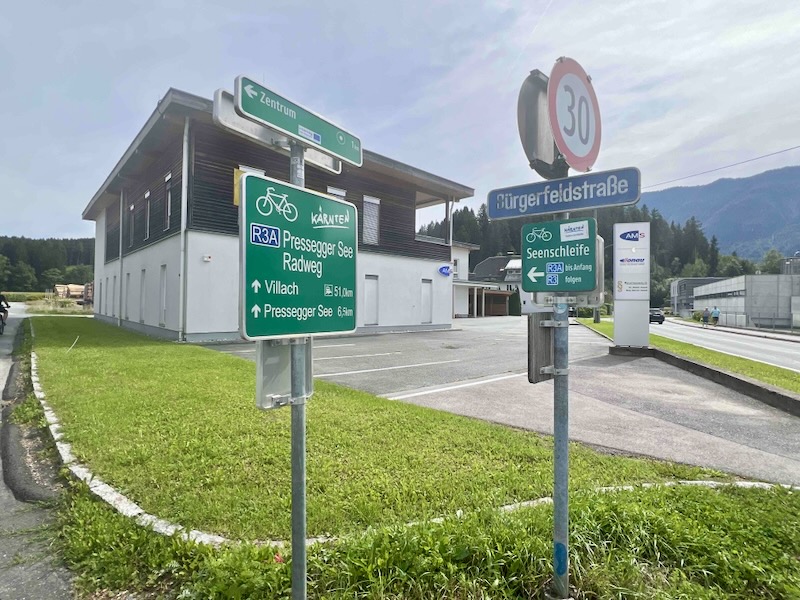 Het is vandaag zondag en om die reden hebben we vandaag een e-bike tour over de Gailtalradweg gepland. Om deze route te rijden reizen we met de trein van Villach Hbf naar Hermagor. Omdat we verwachten dat het op een doordeweekse dag moeilijk is om een parkeerplaats bij het station te vinden plannen we het op zondag. We rijden met de auto vanuit het Rosental naar Villach en vinden met gemak een parkeerplaats op de P en R anlage Villach Lind achter het hoofdstation in Villach.
