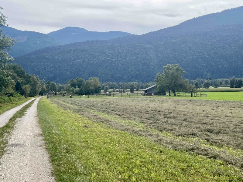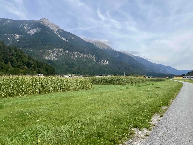 We volgen de Gailtalradweg . Het Gailtal, genoemd naar de rivier de Gail, is een breed dal met aan de zijkant steile berghellingen. In het noorden bij Lienz word het dal begrensd door de Dolomieten in het zuiden door de Karnische Alpen en de Karawanken.
