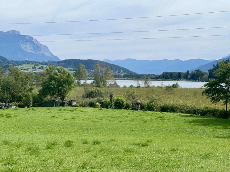Vlakbij Hermagor ligt de Presseggersee. We hadden verwacht direkt langs het meer te kunnen fietsen maar dit is helaas verboden.