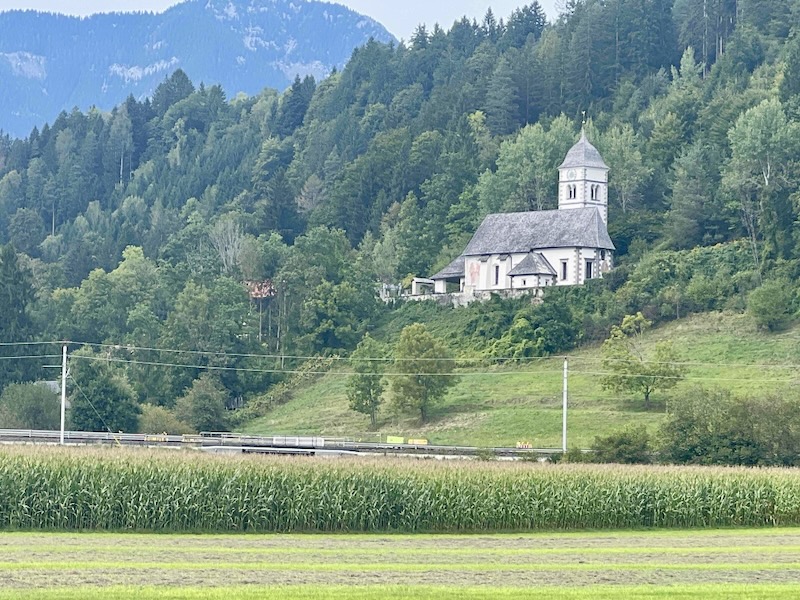 In het dorp Presseggen komen we een bijzondere kerk tegen. De Filialkirche werd in 1485 gewijd aan de heilige Rupert van Salzburg. Het gebouw is een historisch monument. Aan de voorkant zie je een overdekte ruimte die door de open muren aansluiting op de buitenlucht heeft. Er staan kerkbanken in zodat er ook missen gehouden kunnen worden.