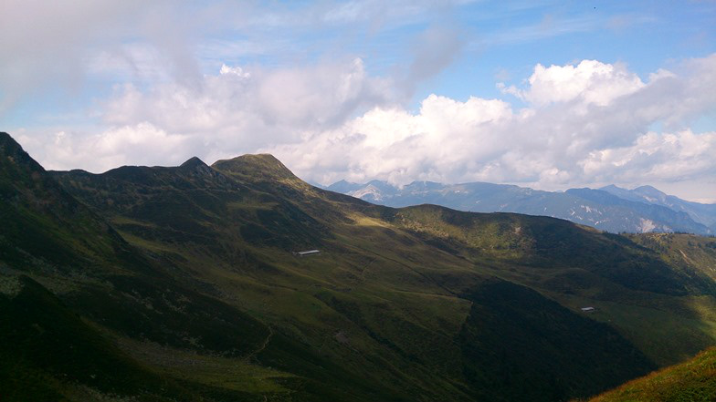We zien de Gartalm liggen we kunnen er ook voor kiezen om gelijk richting de Geolsalm te gaan maar de Gartalm is dichterbij en aangezien we trek hebben in een consumptie lopen we nog verder over het pad richting Hoch Fügen.