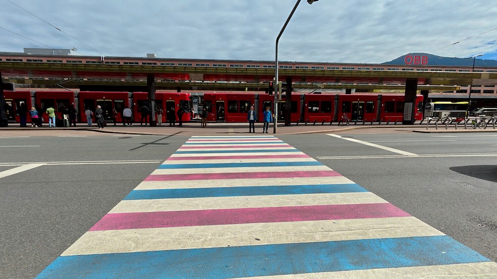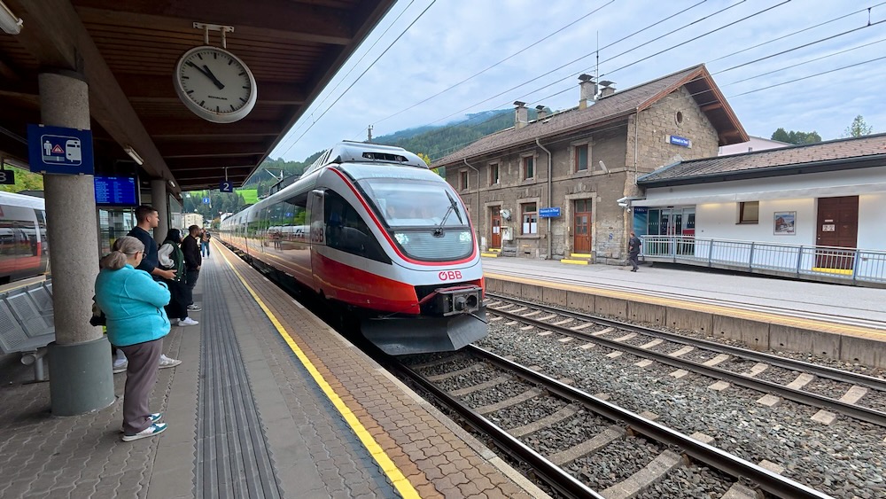 We reizen dit keer met de trein. Vanaf het station in Steinach sta je in 22 minuten op het hoofdstation van Innsbruck, dat midden in het centrum ligt. De trein rijdt ieder half uur, een uitstekende verbinding. Bovendien bespaart dit tolkosten van de Brennerautobahn en parkeerkosten in Innsbruck. Een win-winsituatie.
