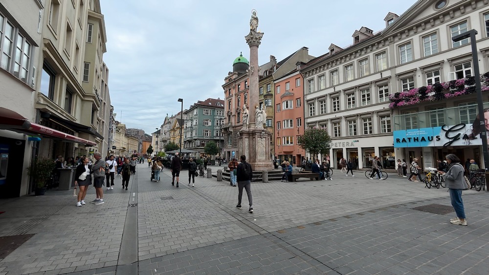 Opnieuw een dag met een voorspelling van minder weer. Wanneer je dan in de buurt van Innsbruck bent, is de keuze snel gemaakt. We plannen een stadbezoek in. Een paar boodschapjes hebben we altijd wel nodig.