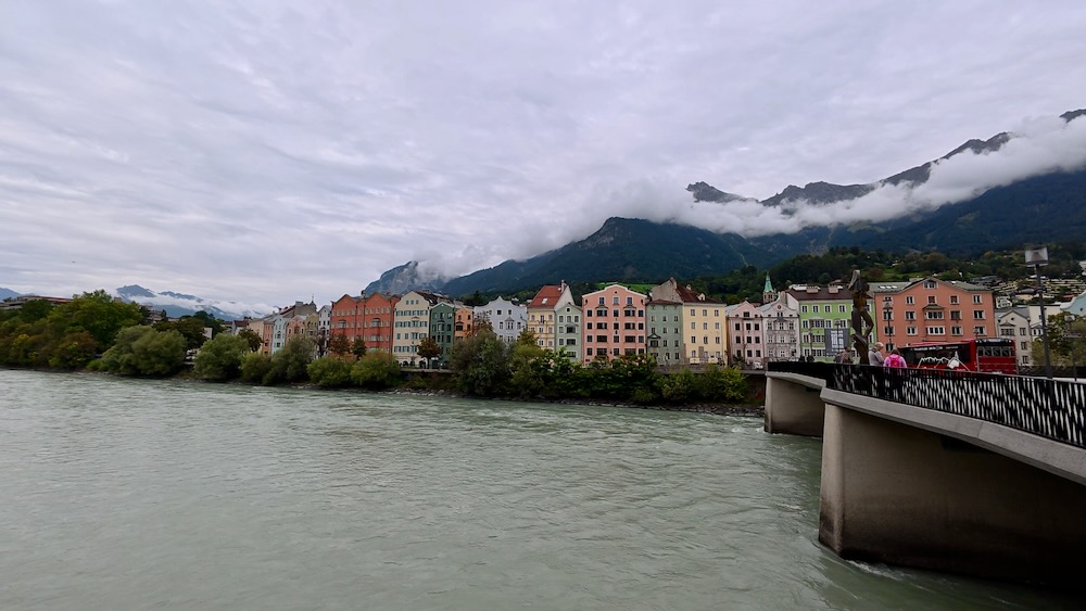 We vervolgen onze weg door de binnenstad en gaan richting de Inn. We kijken over de rivier die de stad zijn naam gegeven heeft.