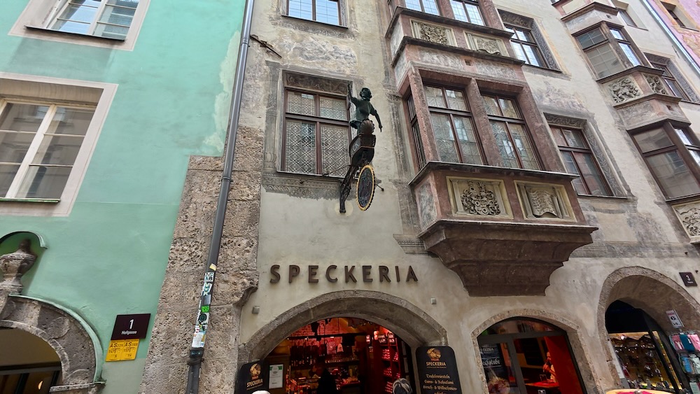 De Speckeria ligt vlakbij het Goldenes Dachl en is geopend van maandag tot en met vrijdag van 09:00 tot 19:00 uur en op zondag van 10:00 tot en met 19:00 uur.