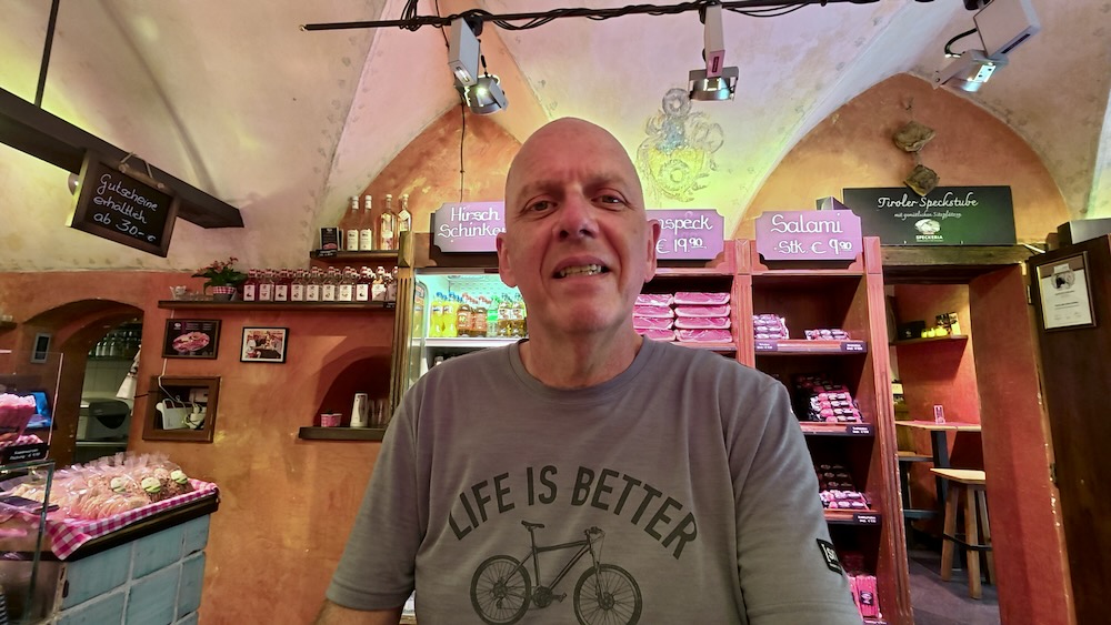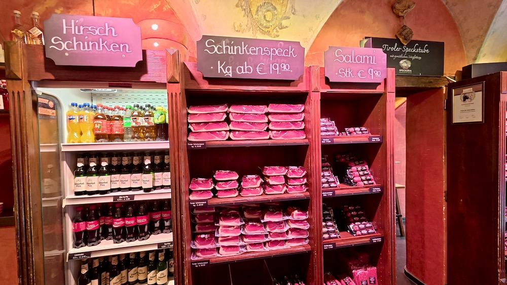 Het is lunchtijd. Omdat we bij een vorig bezoek aan Innsbruck genoten hebben van de Jausenbrettl bij de Speckeria. Besluiten we om hier dit keer weer te lunchen. Hier gaat het naar de 360-tour op de website van de Speckeria.