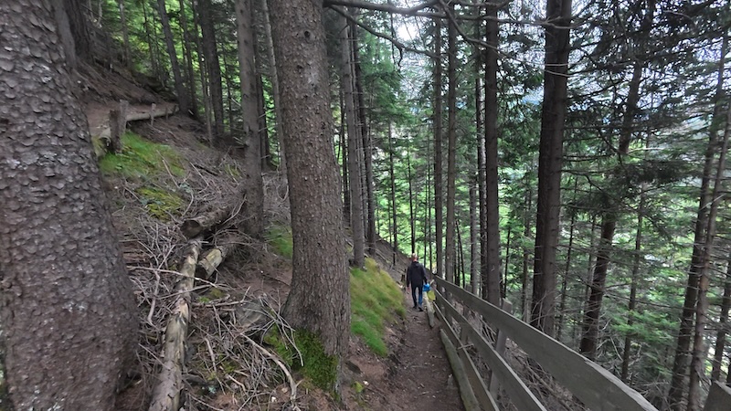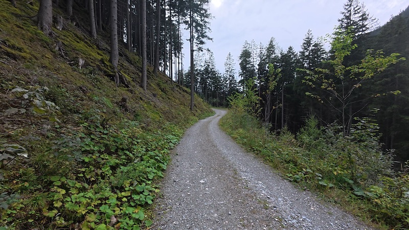 Via een klim over bospaden bereik je de oostelijke toegang van het Padastertal