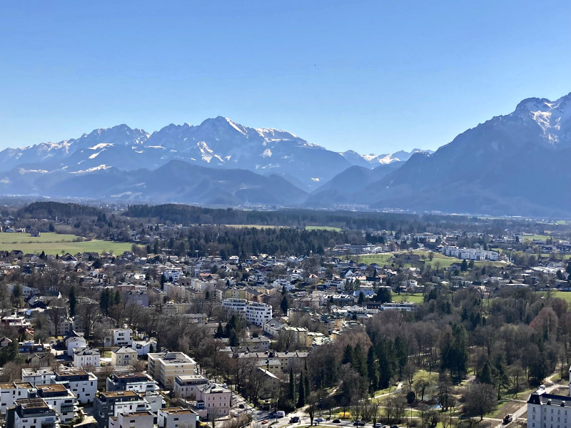 Boven het oude centrum zien we de Festung Hohensalzburg liggen.